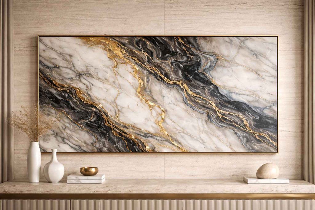 یکی از ایده‌های خلاقانه، استفاده از قطعات کوچک مرمریت به عنوان تابلو یا آثار هنری است. این سنگ با رگه‌های طبیعی و بافت منحصر به فرد، جلوه‌ای جذاب و لوکس ایجاد می‌کند.