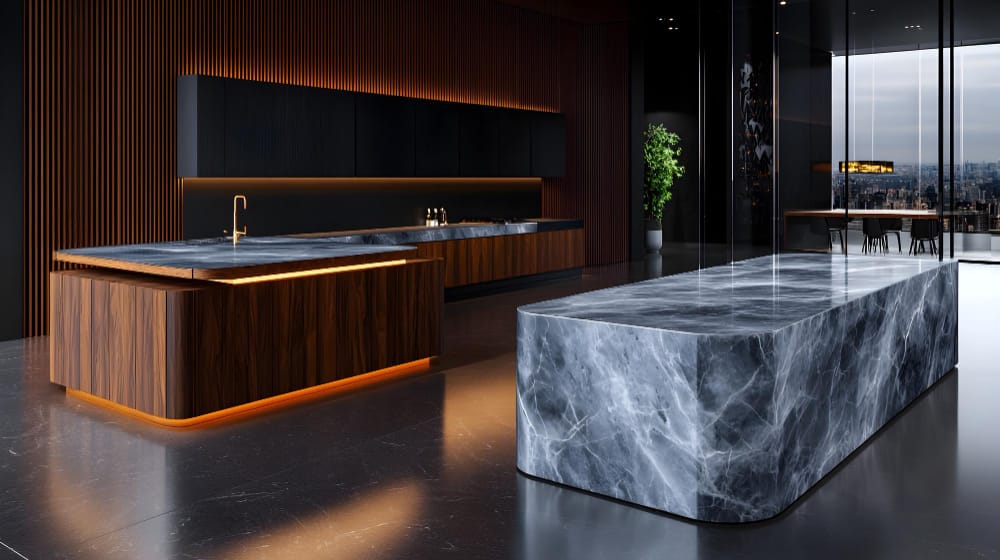 - ترکیب مرمریت با چوب یا فلز برای طراحی خاص