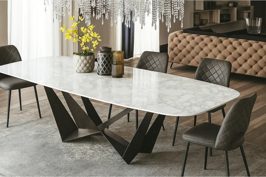 استفاده از مرمریت در میز قهوه، میز ناهارخوری یا میز کناری جلوهای لوکس و شیک ایجاد میکند. این ایده برای فضاهای مدرن و کلاسیک مناسب است و میتواند هویت بصری خانه را تغییر دهد.